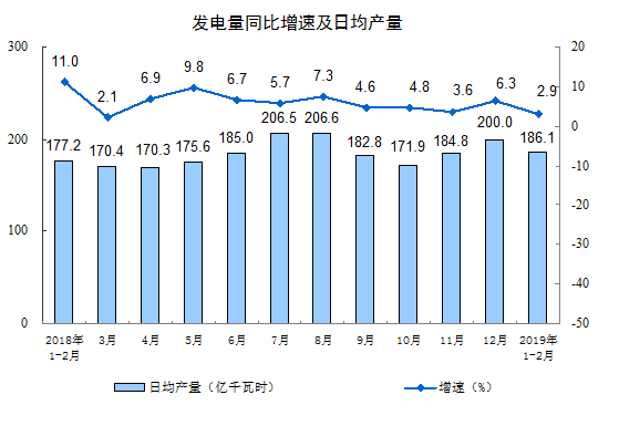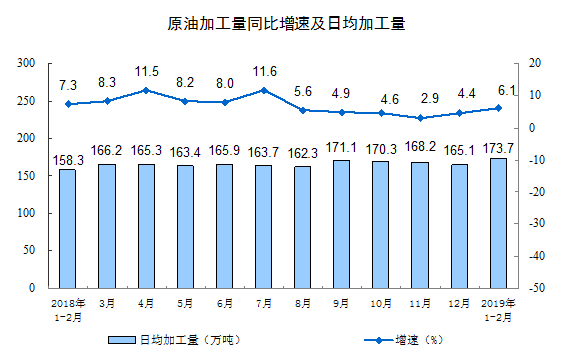 1-2月份,中國(guó)發(fā)電量10982億千瓦時(shí),增長(zhǎng)2.9%,較12月有所回落;原油加工量10249萬(wàn)噸,增長(zhǎng)6.1%,較12月有所回升,且日均加工量也較12月有所上升。