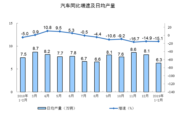 分三大門類看,1-2月份,采礦業(yè)增加值同比增長(zhǎng)0.3%,增速較2018年12月份回落3.3個(gè)百分點(diǎn);制造業(yè)增長(zhǎng)5.6%,加快0.1個(gè)百分點(diǎn);電力、熱力、燃?xì)饧八a(chǎn)和供應(yīng)業(yè)增長(zhǎng)6.8%,回落2.8個(gè)百分點(diǎn)。