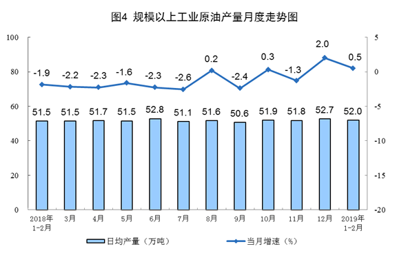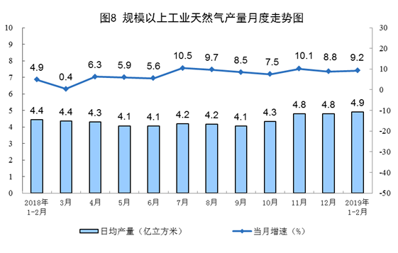 1-2月,中國(guó)原油產(chǎn)量3069萬(wàn)噸,增長(zhǎng)0.5%,增速比上年12月回落1.5個(gè)百分點(diǎn);天然氣產(chǎn)量286.8億立方米,增長(zhǎng)9.2%,增速較上年12月加快0.4個(gè)百分點(diǎn);原煤生產(chǎn)同比下降1.5%,上年12月增長(zhǎng)2.1%,增速由正轉(zhuǎn)負(fù)。