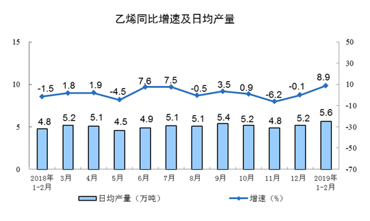 1-2月份,十種有色金屬產(chǎn)量為903萬(wàn)噸,增長(zhǎng)6.2%,環(huán)比日均產(chǎn)量也出現(xiàn)小幅增;乙烯331萬(wàn)噸,增長(zhǎng)8.9%,結(jié)束此前負(fù)增長(zhǎng)勢(shì)態(tài)。