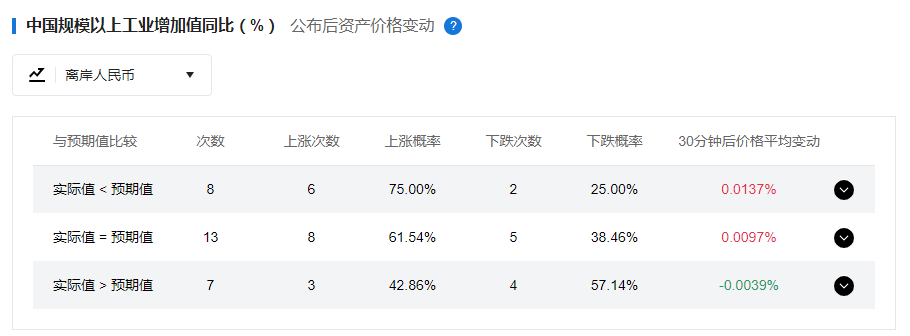 歷史上工業(yè)增加值數(shù)據(jù)公布后,離岸人民幣受到的影響如下(詳情請(qǐng)?jiān)赑C端點(diǎn)擊):