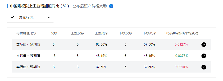 歷史上工業(yè)增加值數(shù)據(jù)公布后,澳元/美元受到的影響如下(詳情請(qǐng)?jiān)赑C端點(diǎn)擊):