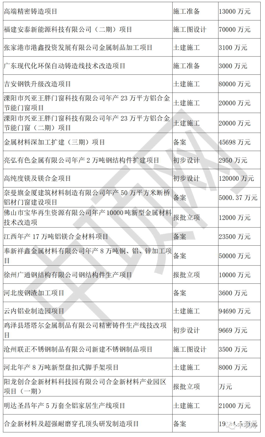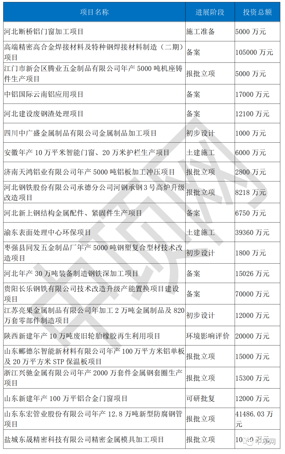 12月全國擬建在建有色金屬加工、鋼鐵加工項目