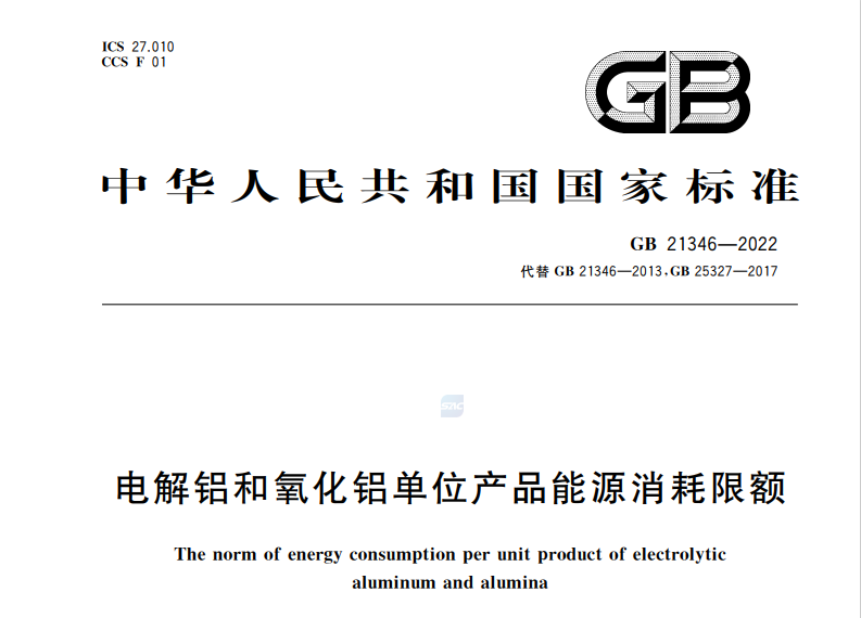 電解鋁和氧化鋁單位產品能源消耗限額